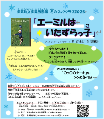 【多気】12月13日(土曜日)冬のブッククラブ2025『エーミルはいたずらっ子』