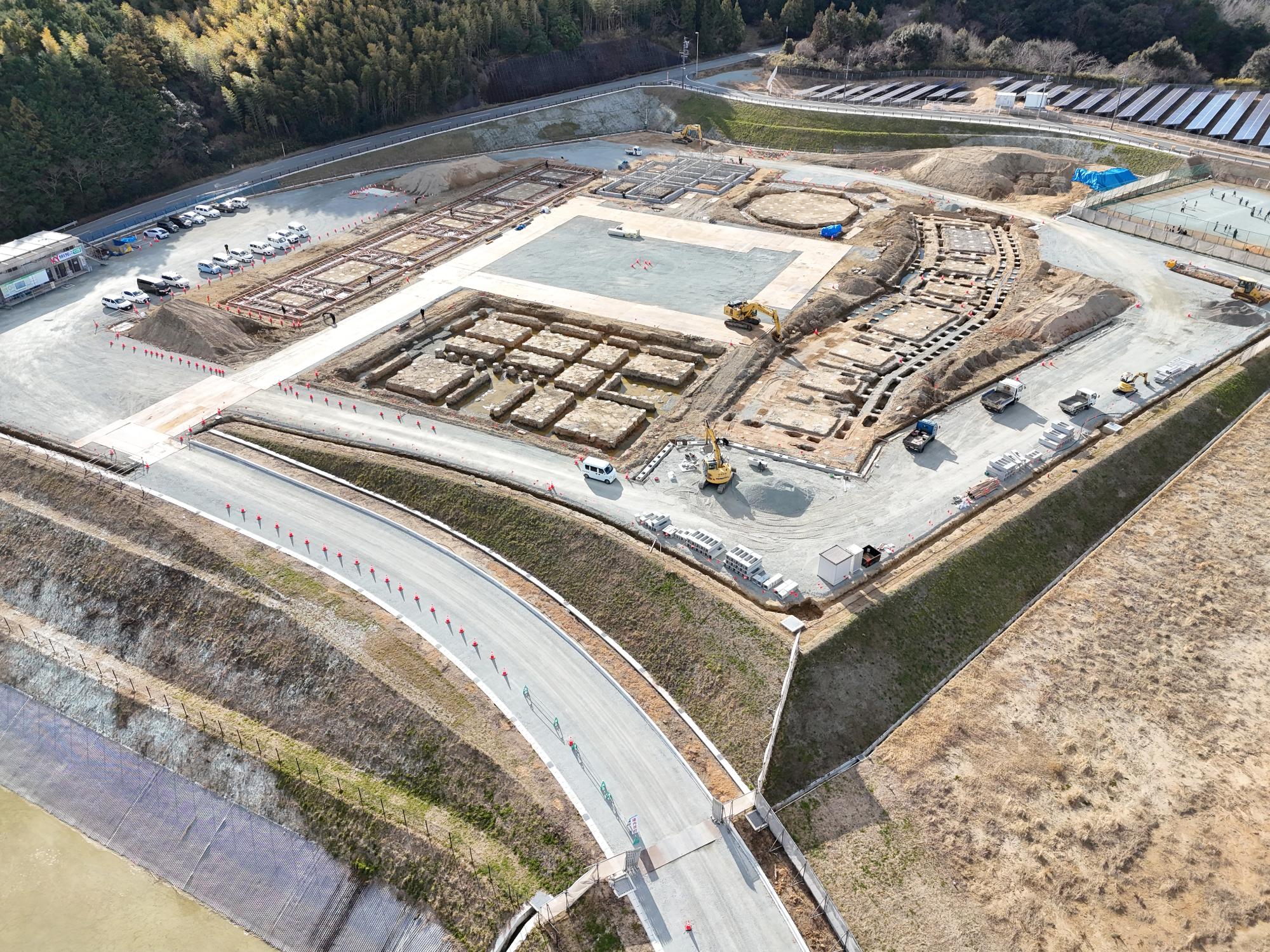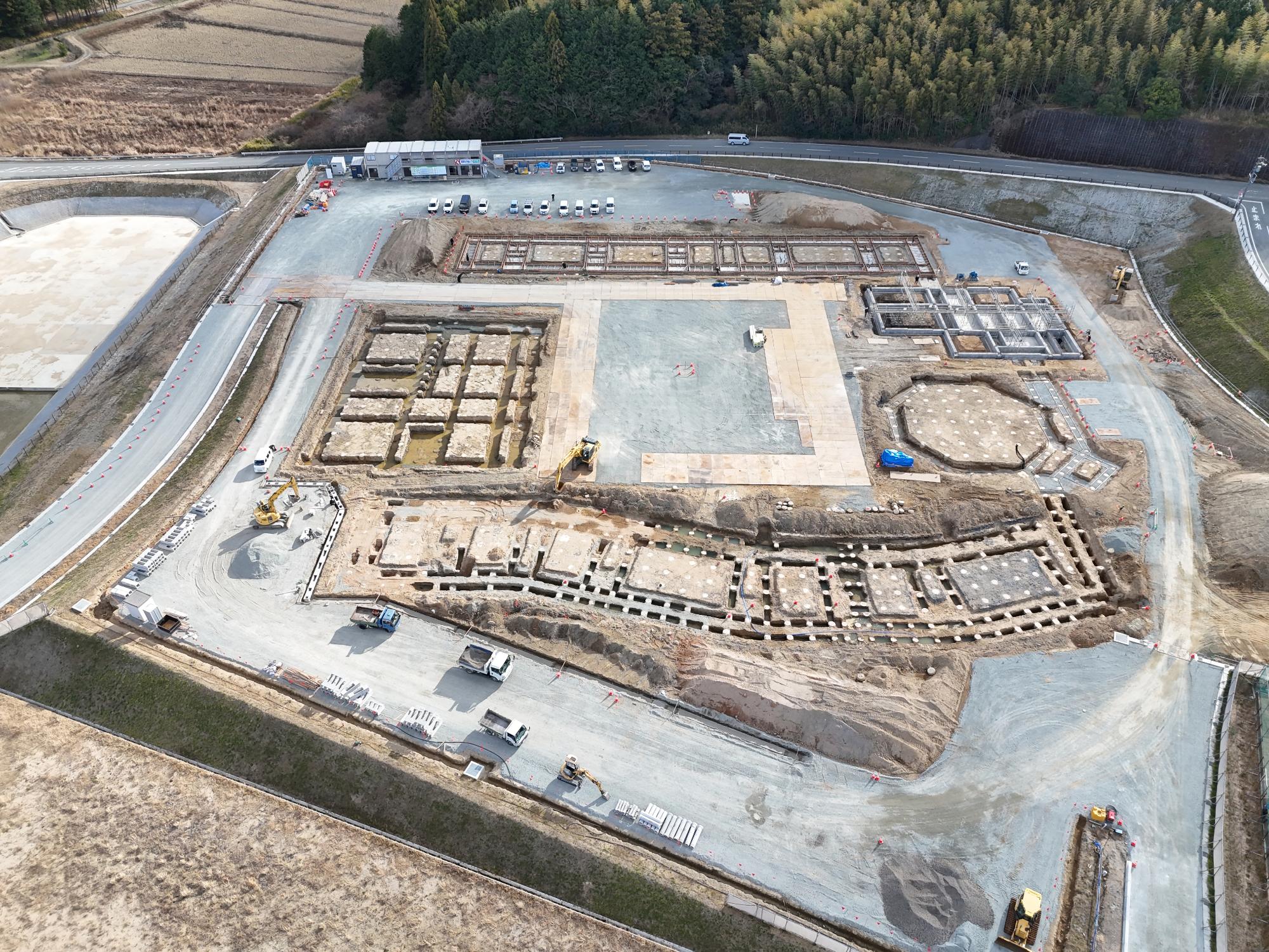 柱状改良が完了し、現在は土工事(建物の基礎を作るための掘削等)を行っています。