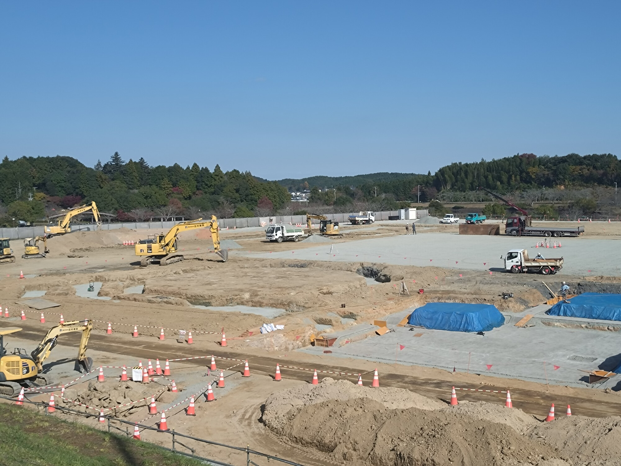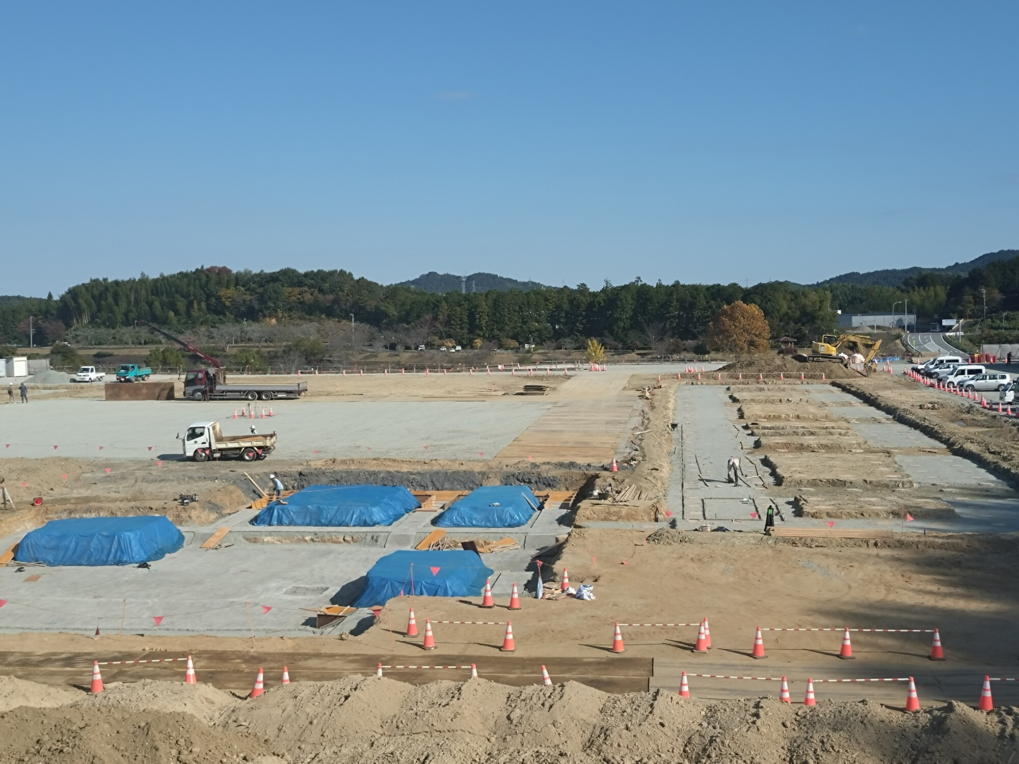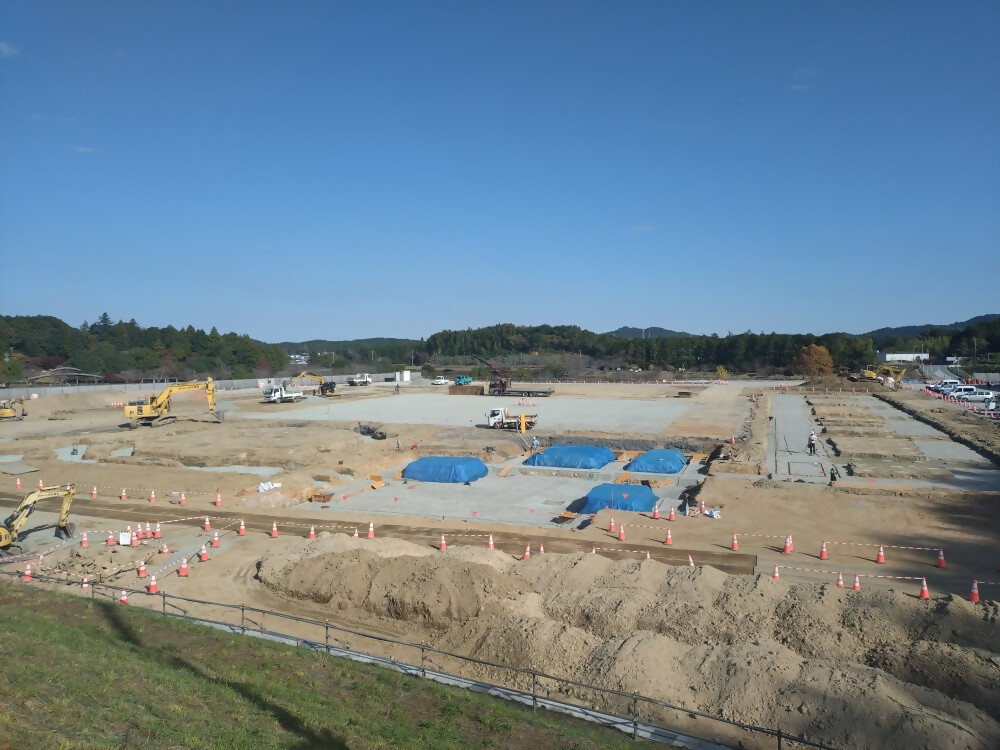 柱状改良が完了し、現在は土工事(建物の基礎を作るための掘削等)を行っています。