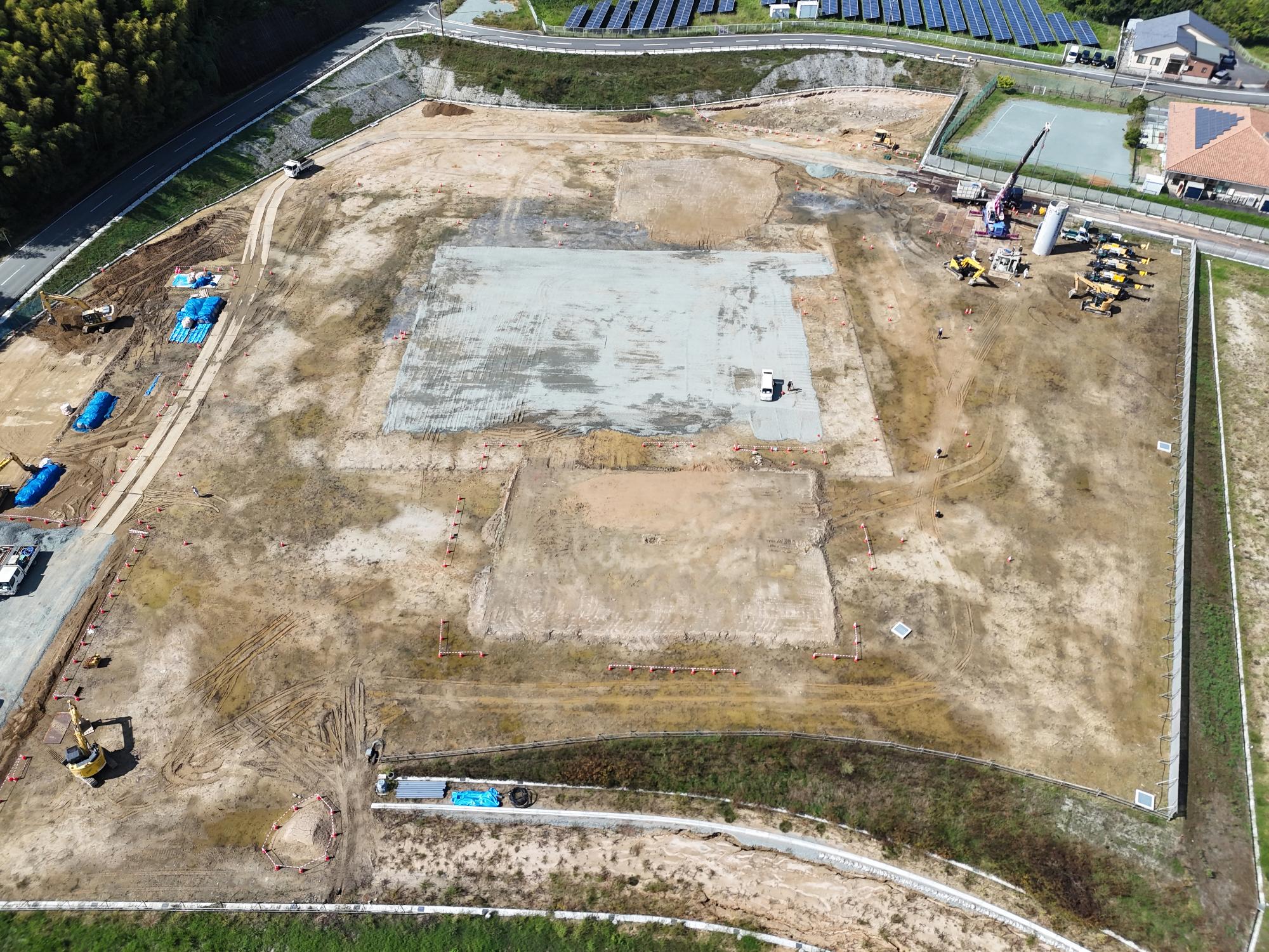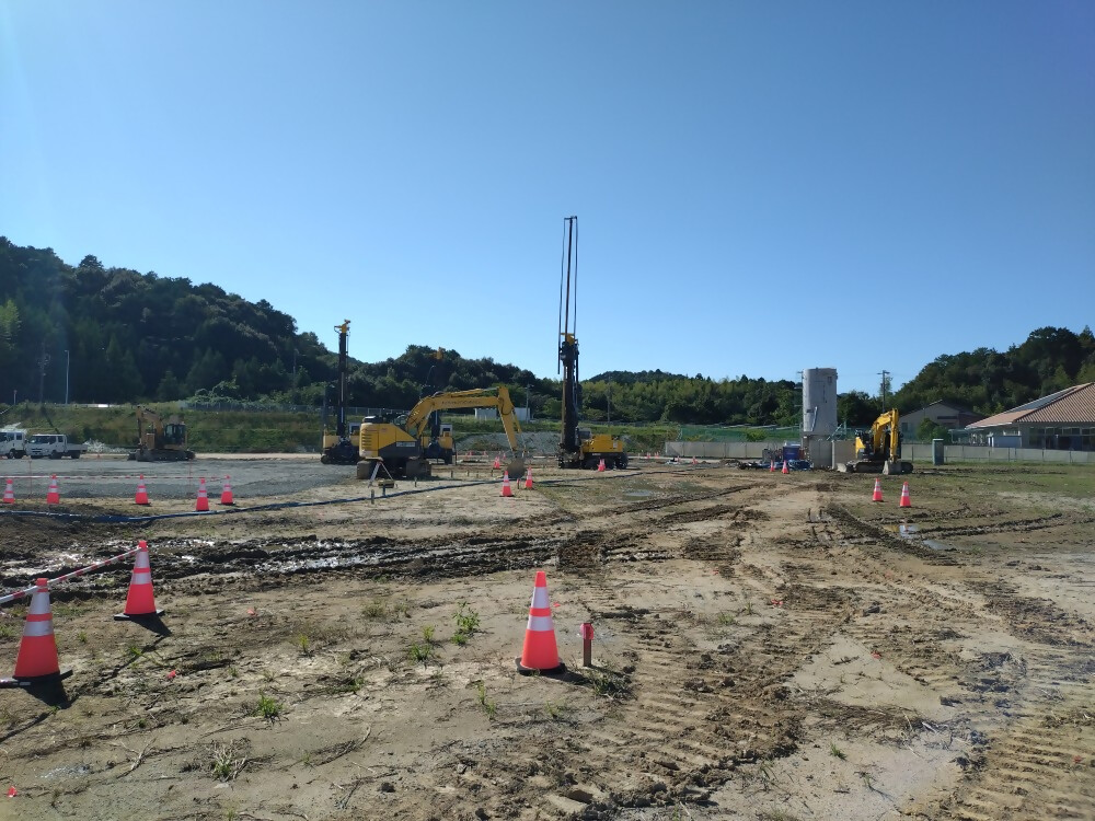 これから11月下旬にかけて建物の基礎部分となる地中に円柱状の柱を造っていきます。