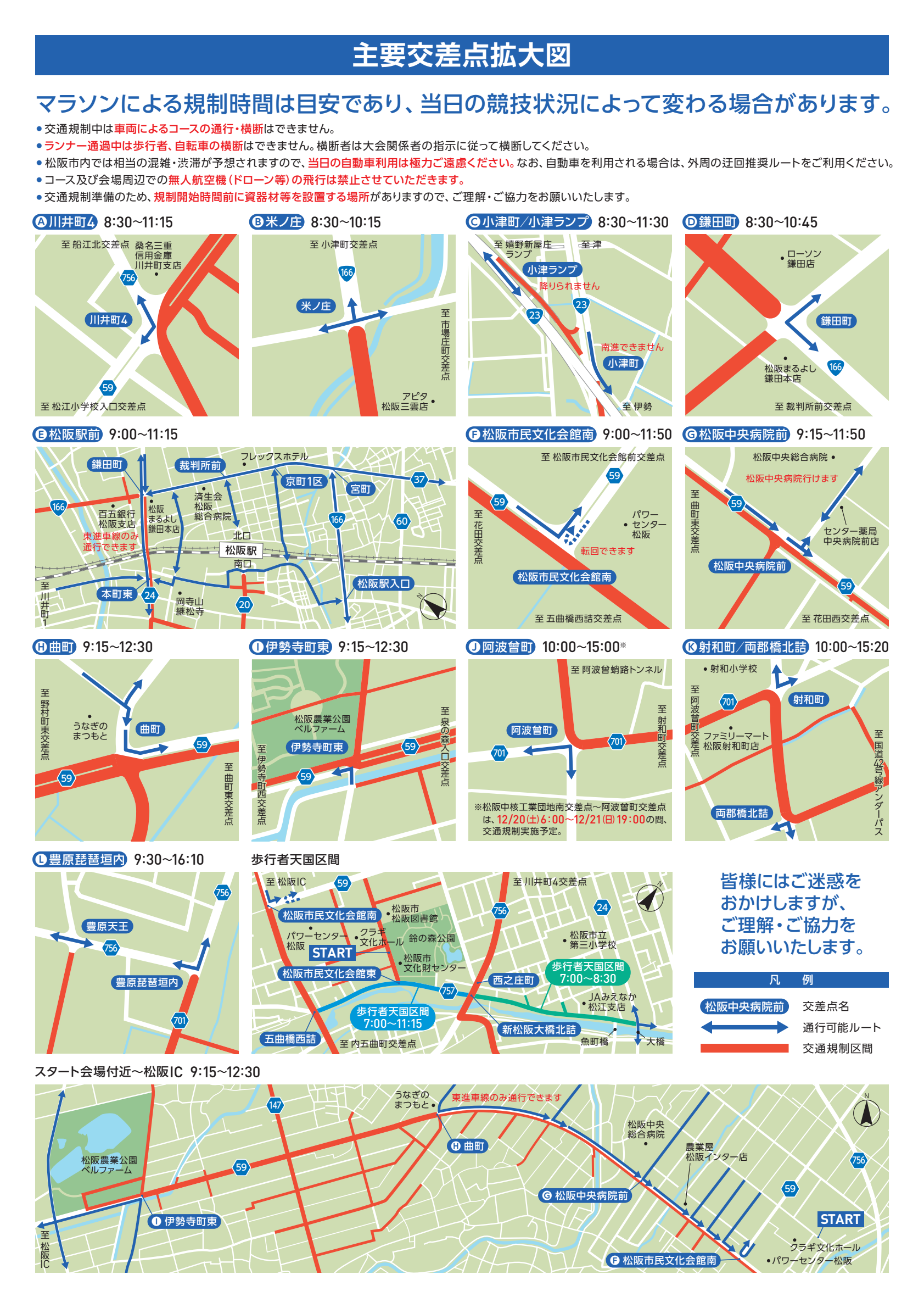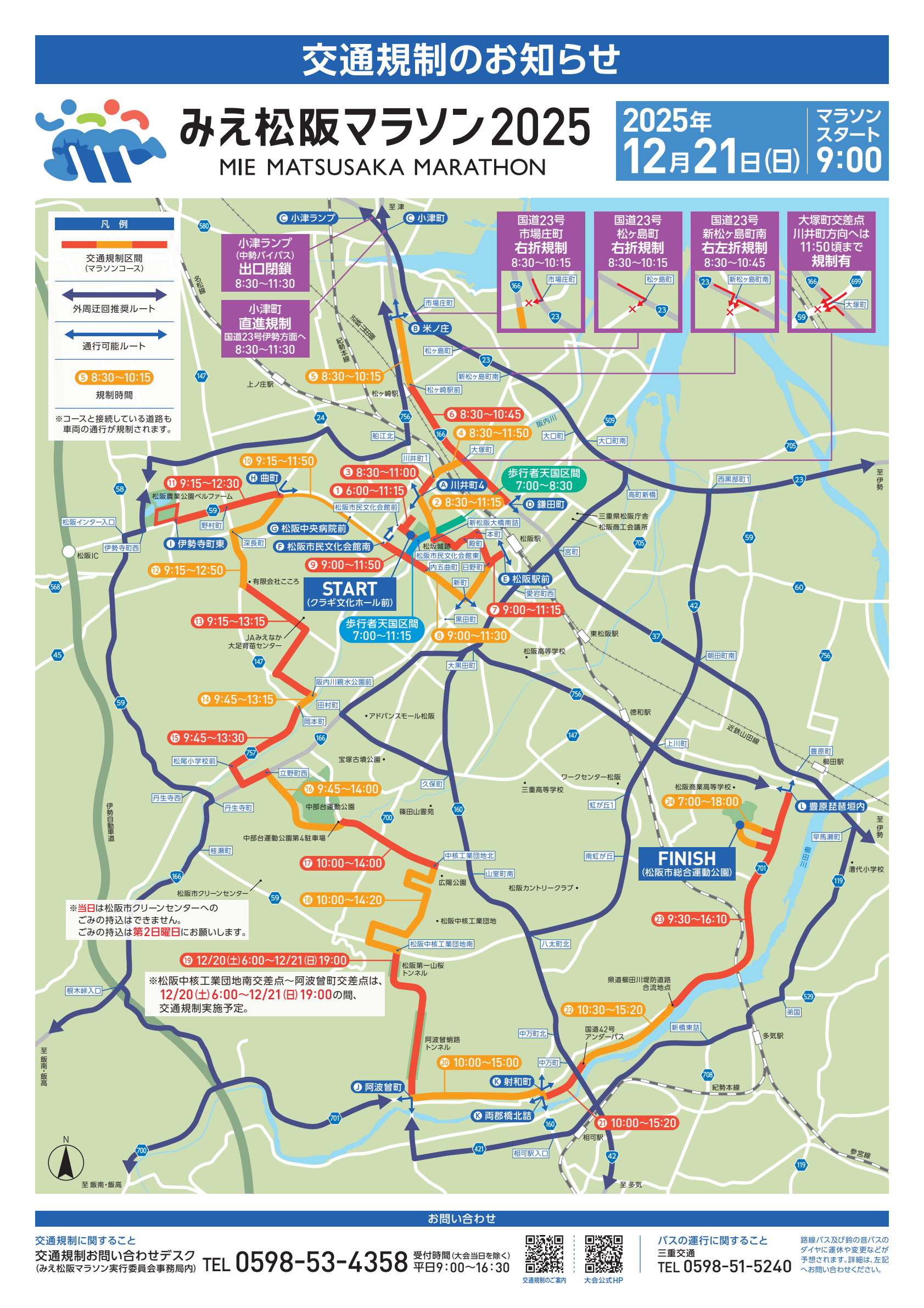 『みえ松阪マラソン2025』開催に伴い、次のとおり交通規制が実施されます。皆様にはご迷惑をお掛けしますが、ご理解ご協力を頂きますようお願いいたします。